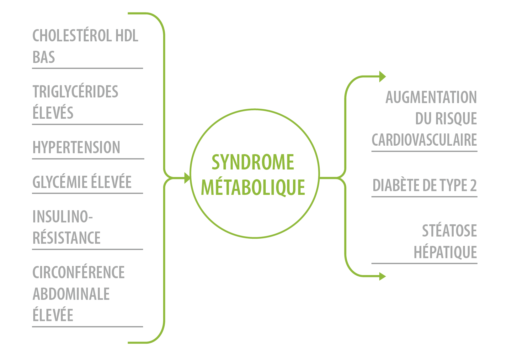 les dyslipidémies, le diabète sucré, certains troubles fibrinolytiques ou encore des marqueurs d’une dysfonction endothéliale, tous facteurs de risque cardiovasculaire. Parmi ces anomalies, le diabète de type 2 est l’une des complications les plus fréquentes. Le risque relatif est au moins multiplié par 30, dans les deux sexes, lorsque l’indice de masse corporelle est supérieur à 30 kg/m2 et particulièrement élevé lorsque le tour de taille est supérieur à 90 cm chez la femme et supérieur à 100 cm chez l’homme. Jadis considéré comme un diabète dit de la «maturité» en raison d’un diagnostic posé au-delà de l’âge de 40 ans, ce diabète est maintenant de plus en plus diagnostiqué chez des sujets jeunes. Ainsi, les pédiatres américains voient, depuis quelques années, davantage de jeunes patients avec un diabète de type 2 qu’avec un diabète de type 1 et le syndrome métabolique, apanage des sujets adultes, se rencontre dorénavant aussi chez les adolescents ! La prévention des maladies métaboliques, en général, et du diabète de type 2, en particulier, passe donc par une prévention de l’obésité, plus spécialement de l’adiposité abdominale, et du syndrome d’insulinorésistance qui lui est associé et ce, dès le plus jeune âge. Les stratégies de prévention peuvent faire appel à des approches hygiéno-diététiques et/ou à des mesures pharmacologiques. Dans la population adulte, la «Finnish Diabetes Prevention Study» en Europe et le «Diabetes Prevention Program» aux Etats-Unis ont démontré récemment que des modifications du style de vie, touchant à la fois l’alimentation et l’activité physique, permettent de réduire de 58% le risque relatif de développer un diabète de type 2 après environ trois années de suivi. Des approches pharmacologiques, faisant appel à des antidiabétiques oraux comme la metformine dans le «Diabetes Prevention Program» ou à l’acarbose dans l’étude «STOPNIDDM», ont également fait leur preuve.